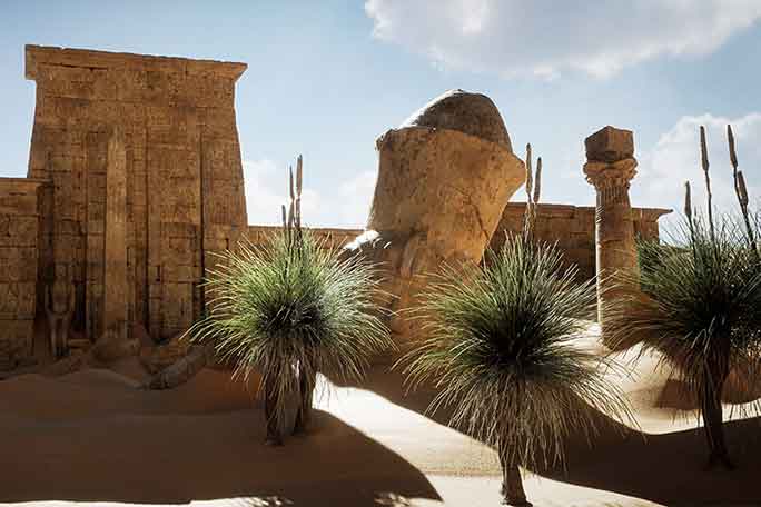 Notre IA générative reconstitue des éléments complexes à partir de données archéologiques fragmentaires. L’upscaling IA pousse la résolution de chaque texture à son niveau maximal — pour des visuels d’une netteté et d’un réalisme absolus.